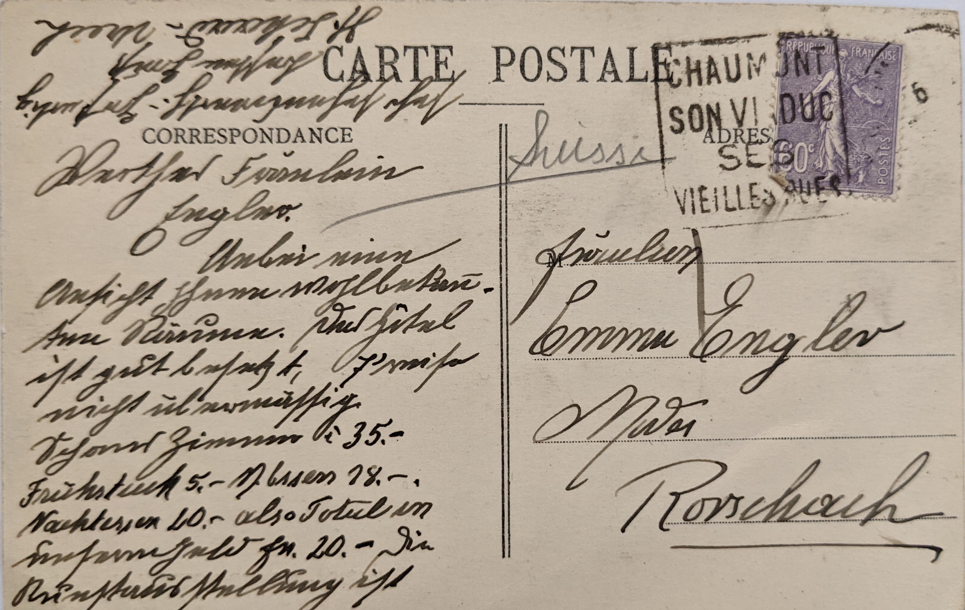 Datierung ungewiss, aufgrund der Briefmarke aber wohl erst nach 1924 geschrieben und versendet worden.