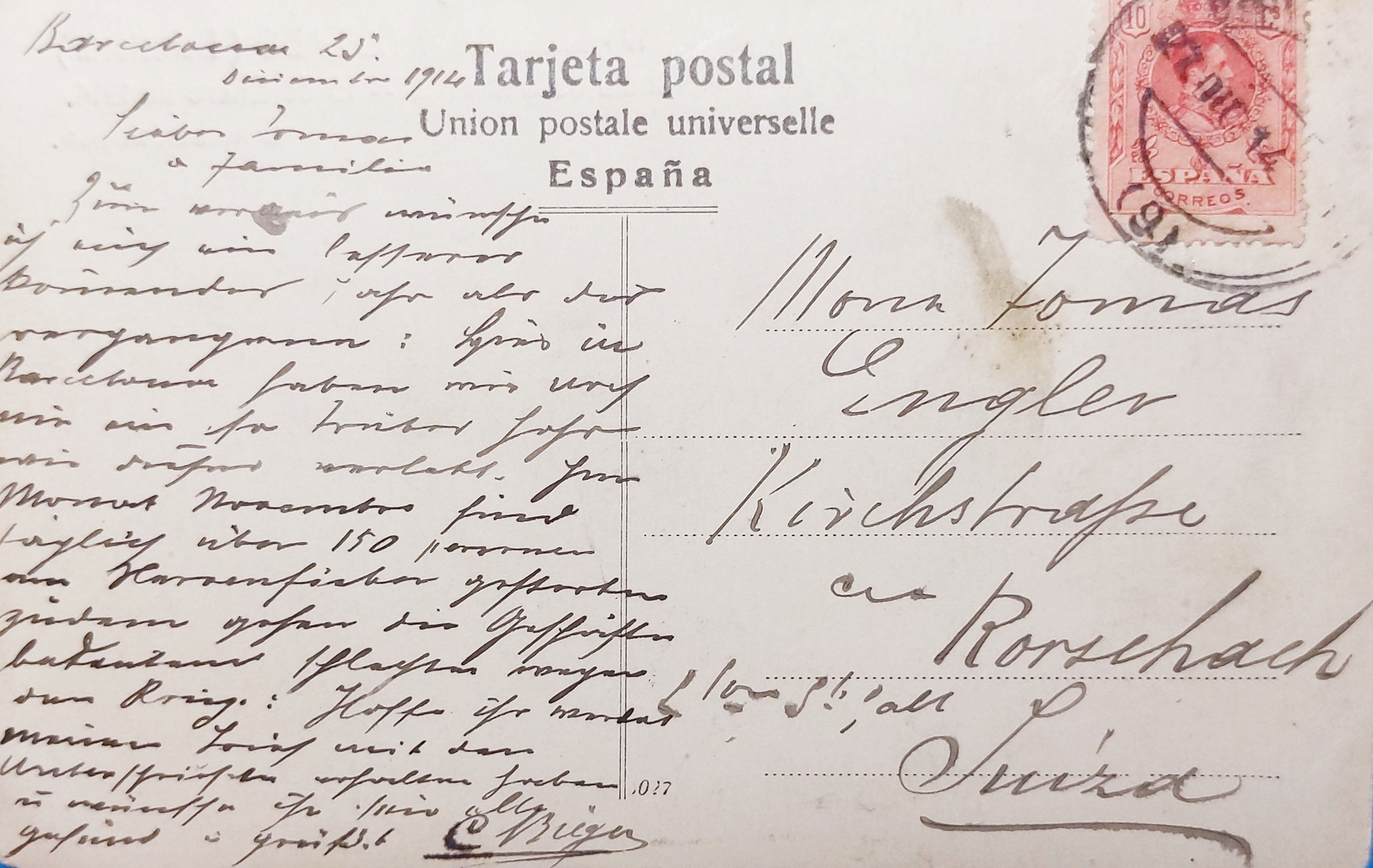 C. Bieger an Tomas Engler, 25.12.1914, Barcelona
