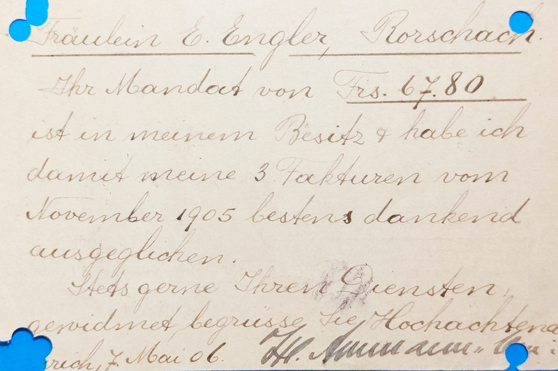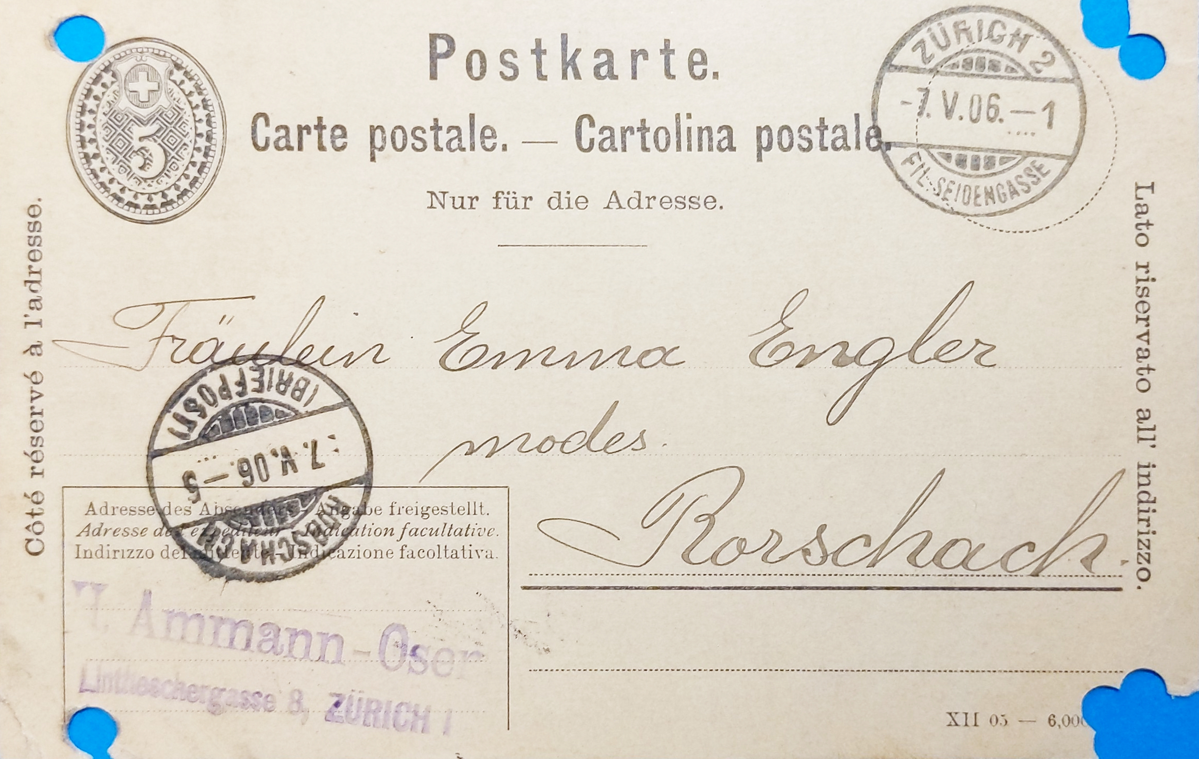 H. Ammann-Oser an Emma Engler, 07.05.1906, Zürich