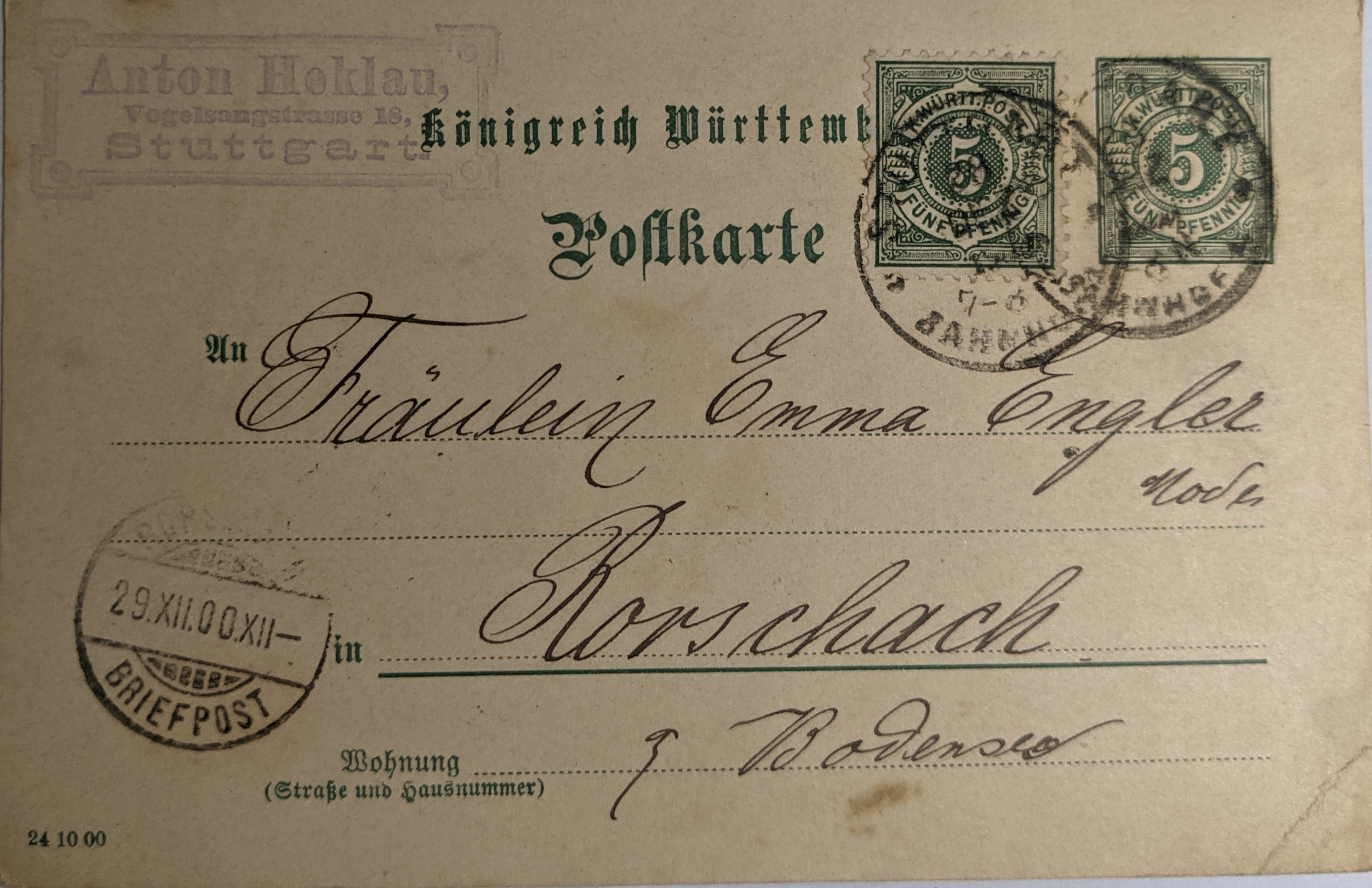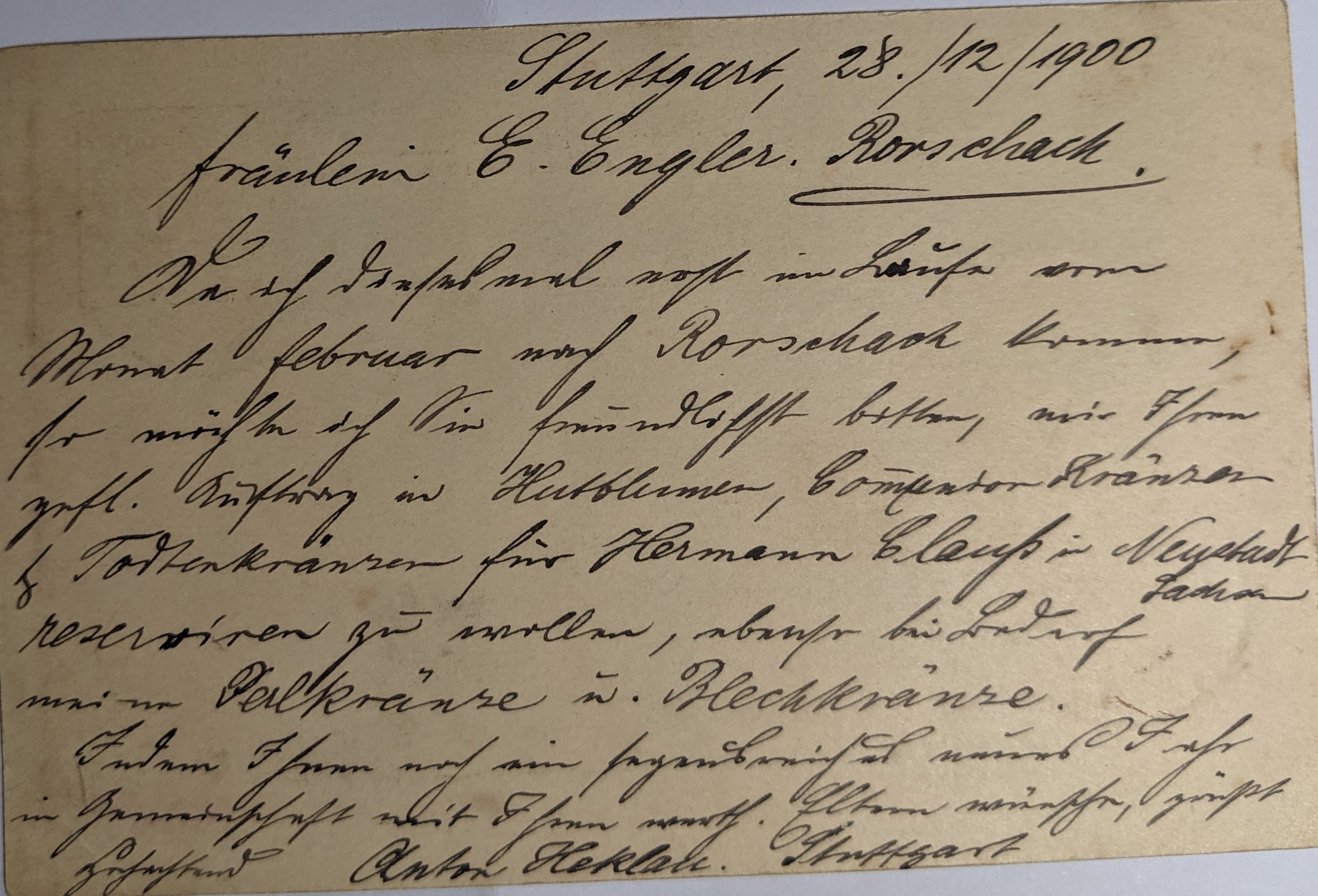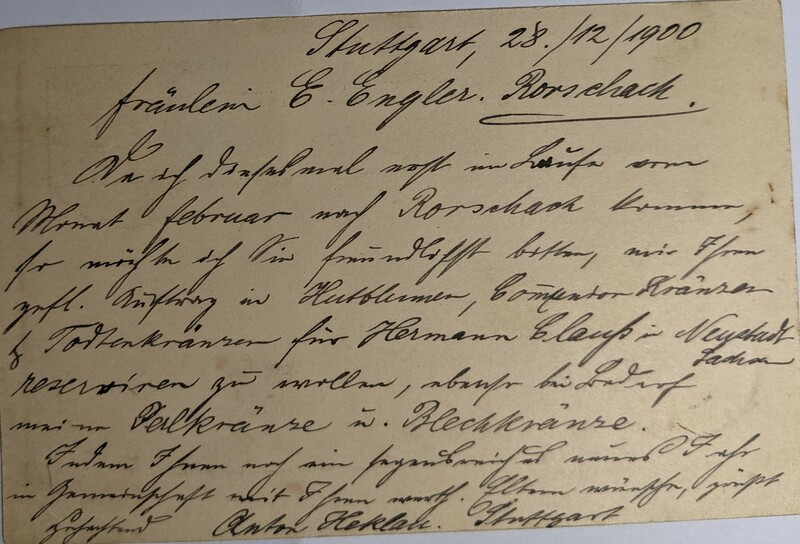 Anton Heklau an Emma Engler, 28.12.1900, Stuttgart