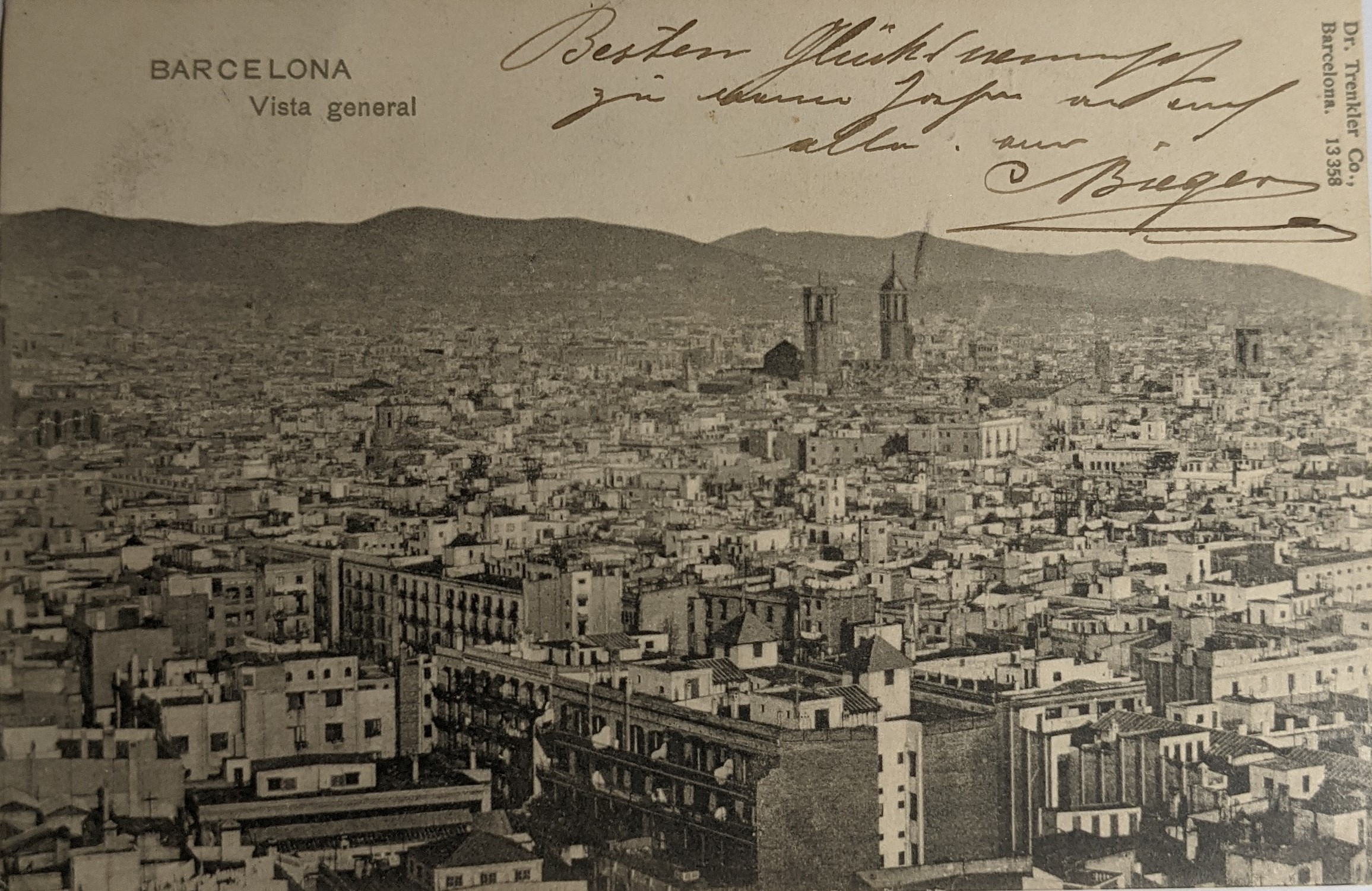 1. aus Barcelona, Ort vermutlich ungeschrieben weil auf Bildseite ersichtlich (und anhand gedruckter Bildunterschrift identifizierbar).