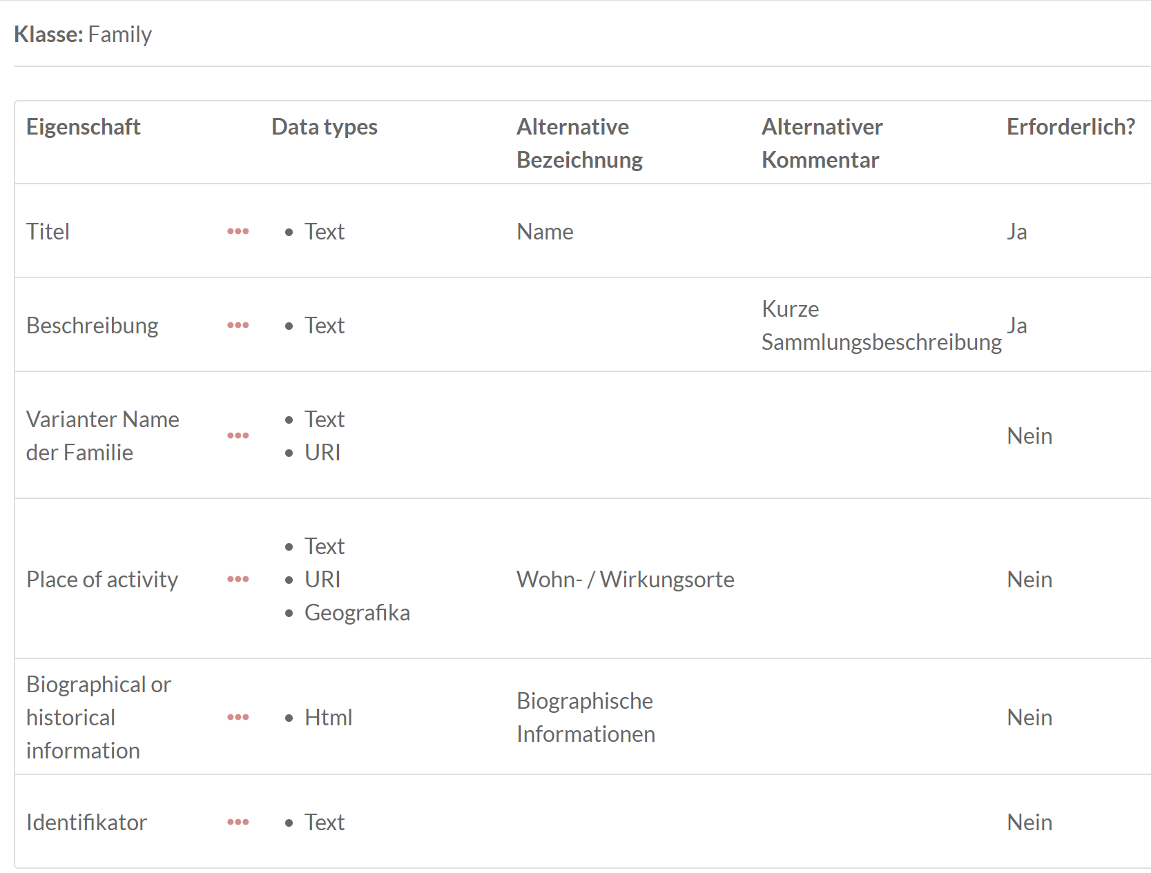 Die drei Sammlungen enthalten nebst den Objekten nur noch eine Kurzbeschreibung. Zunächst ebenfalls als Sammlung konzipiert, danach jedoch in ein Objekt umgewandelt, wurde die Ressource "Familie Engler (Kirchstrasse, Rorschach)", die diejenigen Personen der Familie Engler resp. des Haushalts/der Haushalte der Familie umfasst, die um 1900 in der Kirchstrasse in Rorschach wohnhaft waren. " Die Ressource wurde erzeugt und mit weiteren Daten angereichert, weil manche Postkarten an die ganze Familie adressiert waren und diese deshalb quasi als "Korrespondenzpartner" aufgenommen werden wollte. Indem die Ressource alle Familienmitglieder enthält, konnte sie in diesen Fällen direkt im Feld «Adressat*in» verknüpft werden, anstatt dort jedes Familienmitglied einzeln auflisten zu müssen. Zugleich ist das Objekt hilfreich, um einen Überblick über die Familie und die – zumindest zeitweise – gemeinsam in einem Haushalt lebenden Familienmitglieder zu gewinnen. Die Ressource wurde u.a. deshalb in ein Objekt umgewandelt, weil sie als Sammlung nicht einer weiteren Sammlung ("Korrespondenzpartner*innen") hinzugefügt werden konnte. Da die wenigen Attribute des Familienobjektes denjenigen der Ressourcenvorlage Person entsprechen, wird nicht mehr auf die Eigenschaften des Objektes eingegangen.